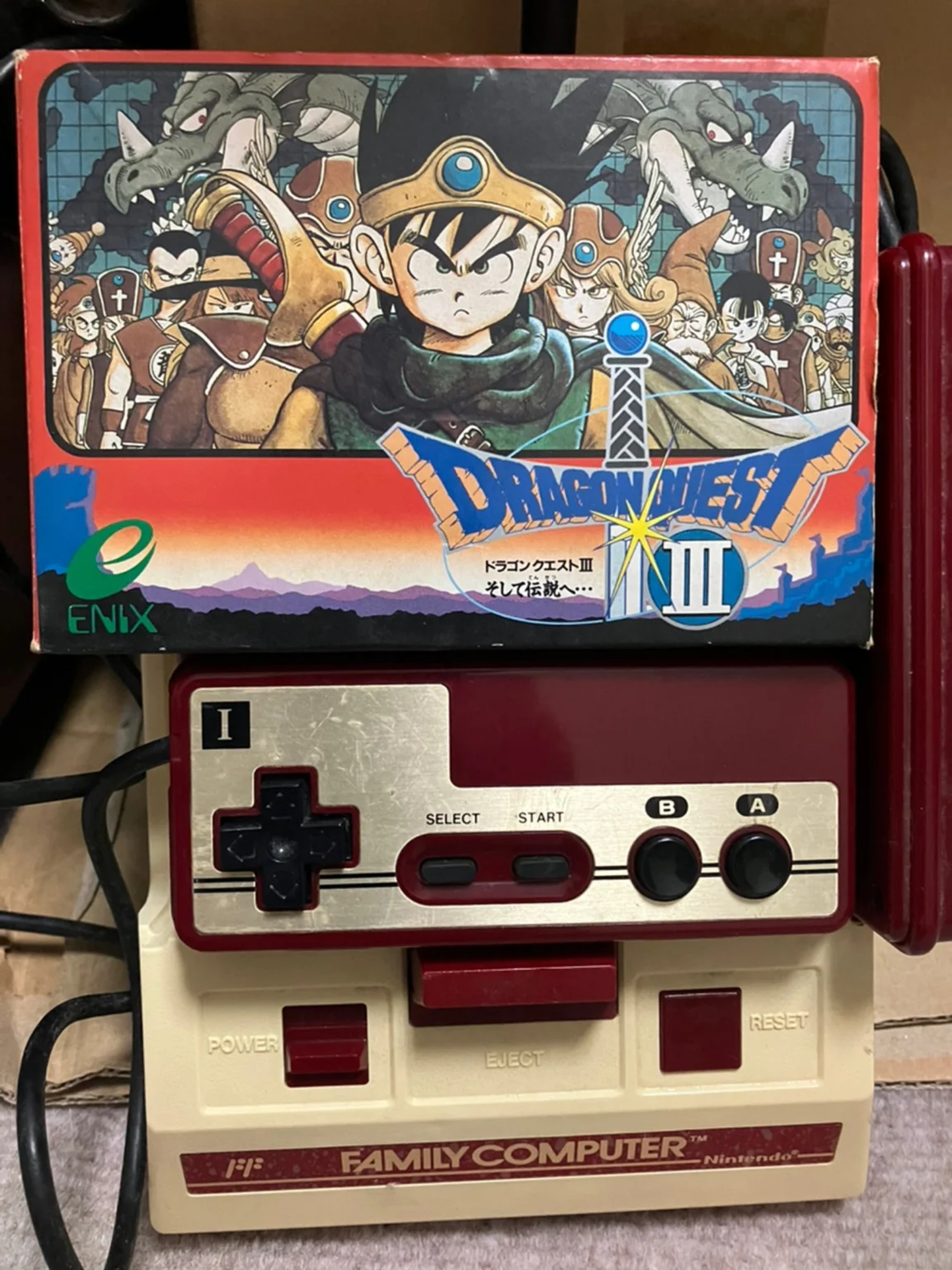今でも大切に保管している当時もののファミコンと社会現象にもなったドラクエⅢ(鳥山明先生のイラストが最高にかっこいい!)