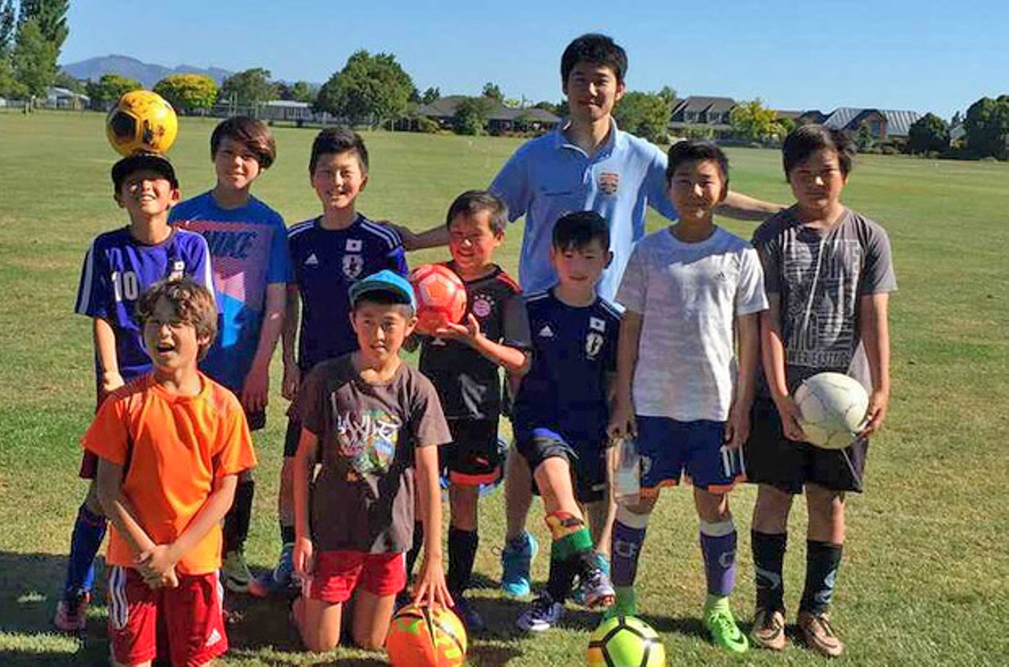 ニュージーランドでは、偶然職場で出会った日本人の方に、「日本人コーチからサッカーを教えてもらいたいんだよねー」という話を聞いたので、“よし、俺がやろう!”と決心し、リーグに参加する傍らで少年サッカースクールを立ち上げ、子供たちに指導していました。
