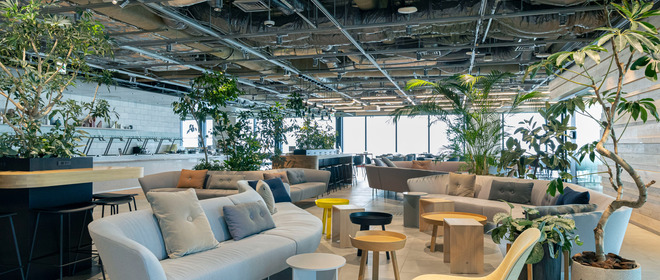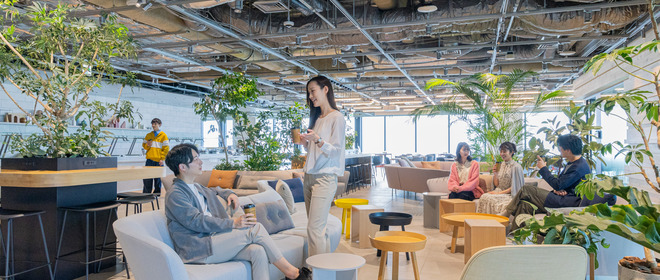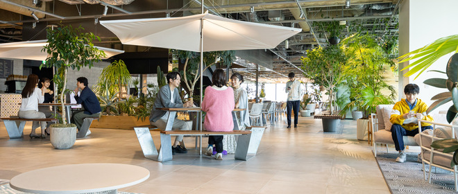 渋谷駅直結の渋谷スクランブルスクエア内にあるオフィスで、最新の設備が揃っています。1g1円で食べられるビュッフェ形式の食堂や、オフィス内コンビニ、カフェも併設されており、非常に快適なカフィス環境となっています。