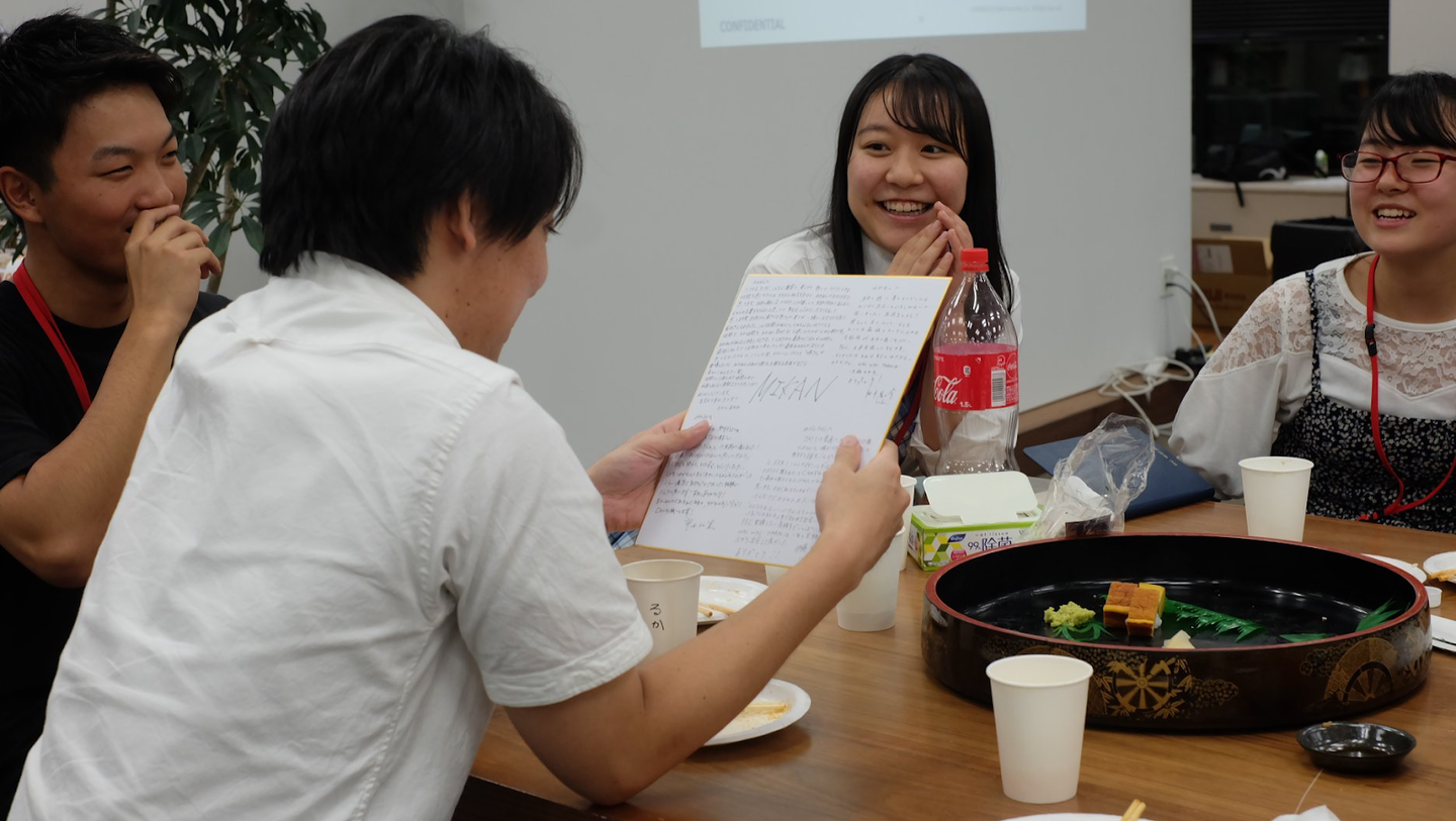 参加者からメンターへアツいメッセージの込められた寄せ書きのプレゼント。