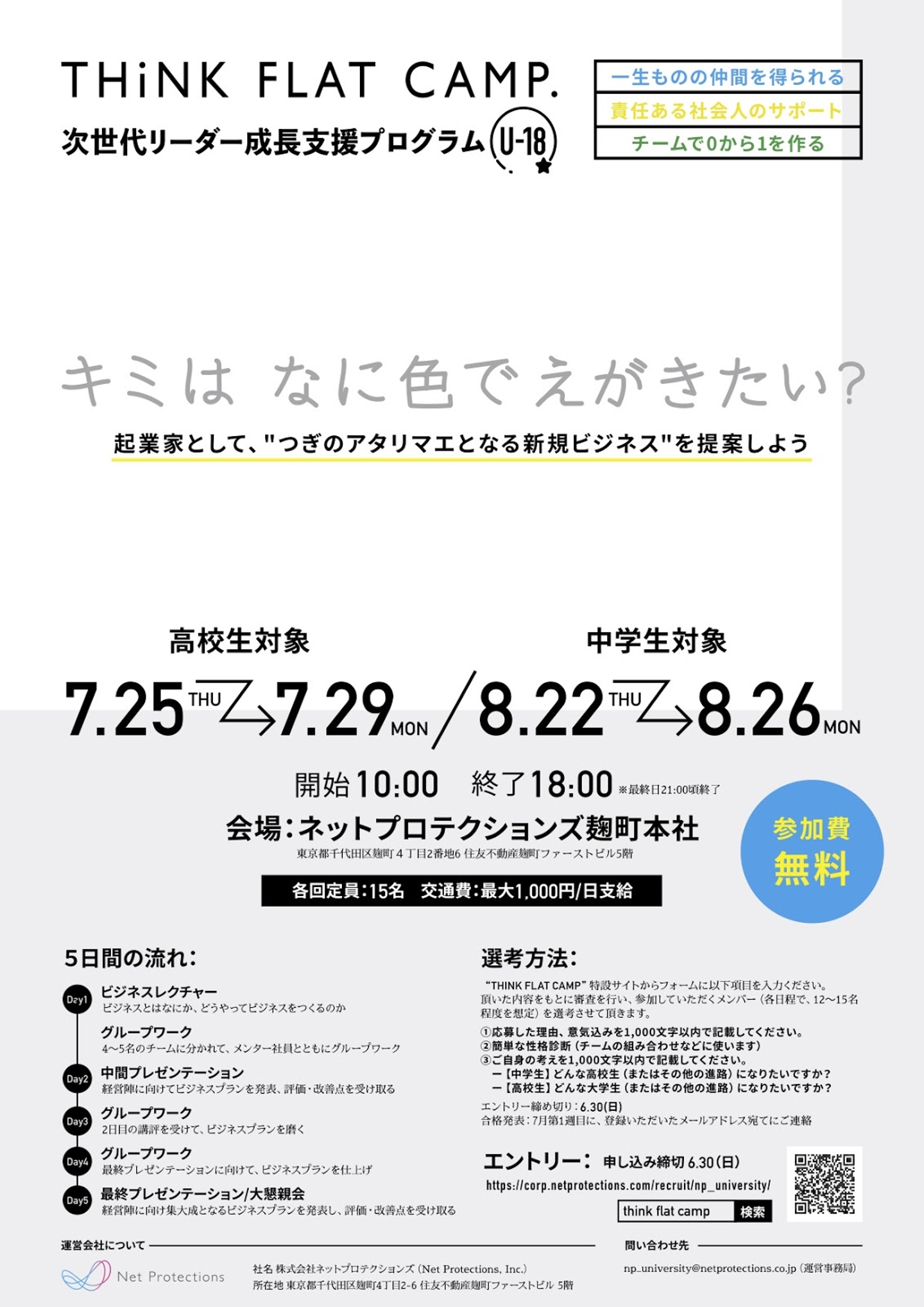 公式サイトはこちら:https://corp.netprotections.com/recruit/thinkflatcamp2020/