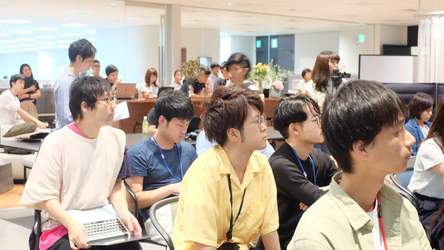お昼過ぎ。遂に中間プレゼン開始です。社内の注目度も高く、ギャラリーも大勢集まりました!