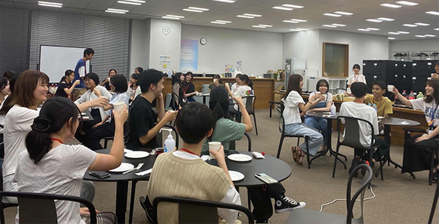 4〜5名が一つのチームになり、5日間にわたってグループワークをしながら事業企画を立案。中間報告を挟み、最終的には当社の経営陣へプレゼンテーションを行ないます。テーマは「つぎのアタリマエとして実現したい社会に近付くための、持続可能な仕組みを立案せよ」。答えのない問いに対して主体性を持って考え抜き、課題を発見する、想いを形にするという通常の学校教育では得がたい経験を得る、また自分自身で考えたことを他者にぶつけてプロジェクトを共創する体験を通じて得た気づきを今後の人生に活かしてもらうことを目的にしています。