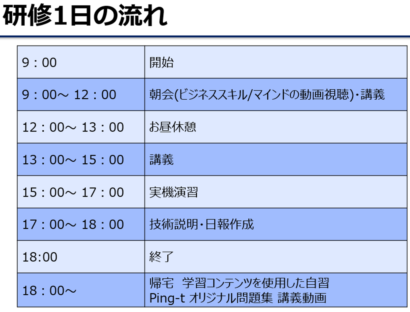 研修の後半になると、物理作業や設定投入に慣れてスムーズにできるようになったり