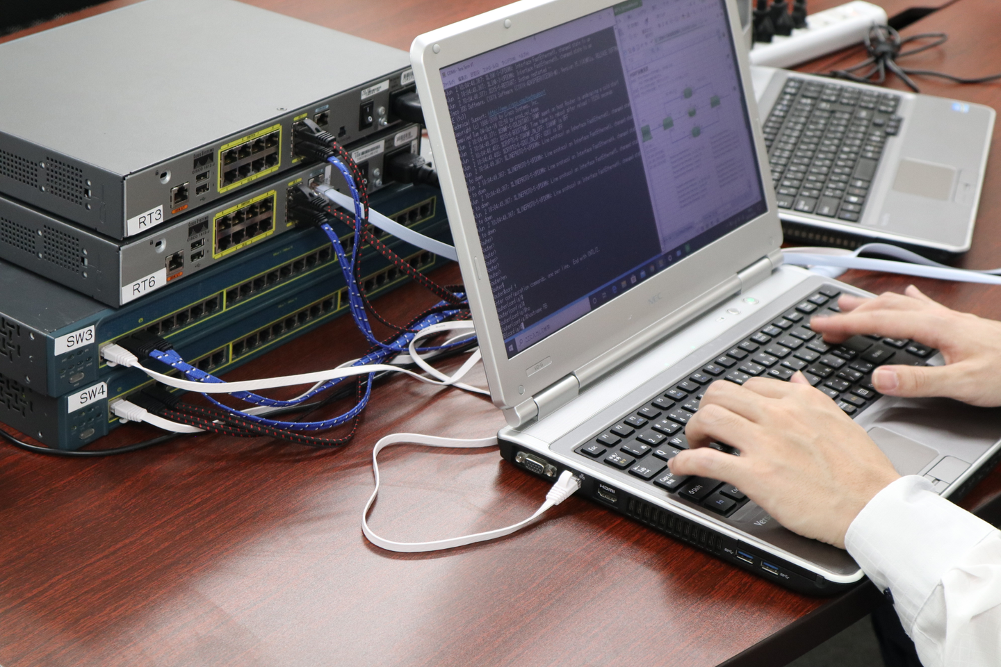 中途採用で入社した社員には、まず1か月間CCNA取得を目標とする研修を受けていただいています。