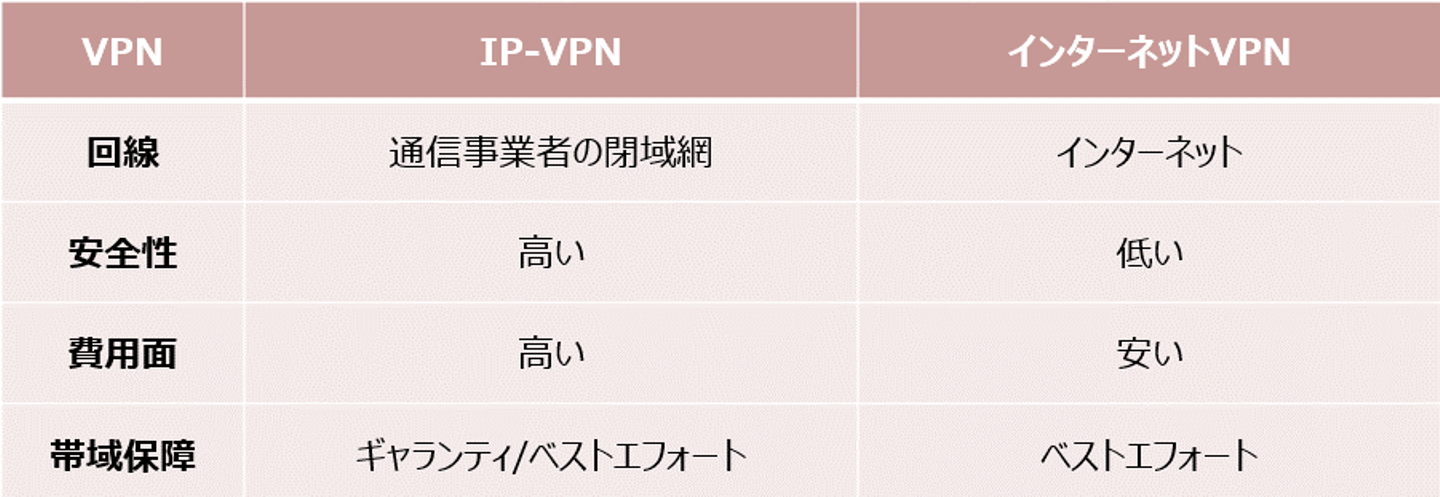 インターネット網と比較すると限定されたユーザすなわち会員制となるため、価格面でみるとIP-VPNの方が高価です。