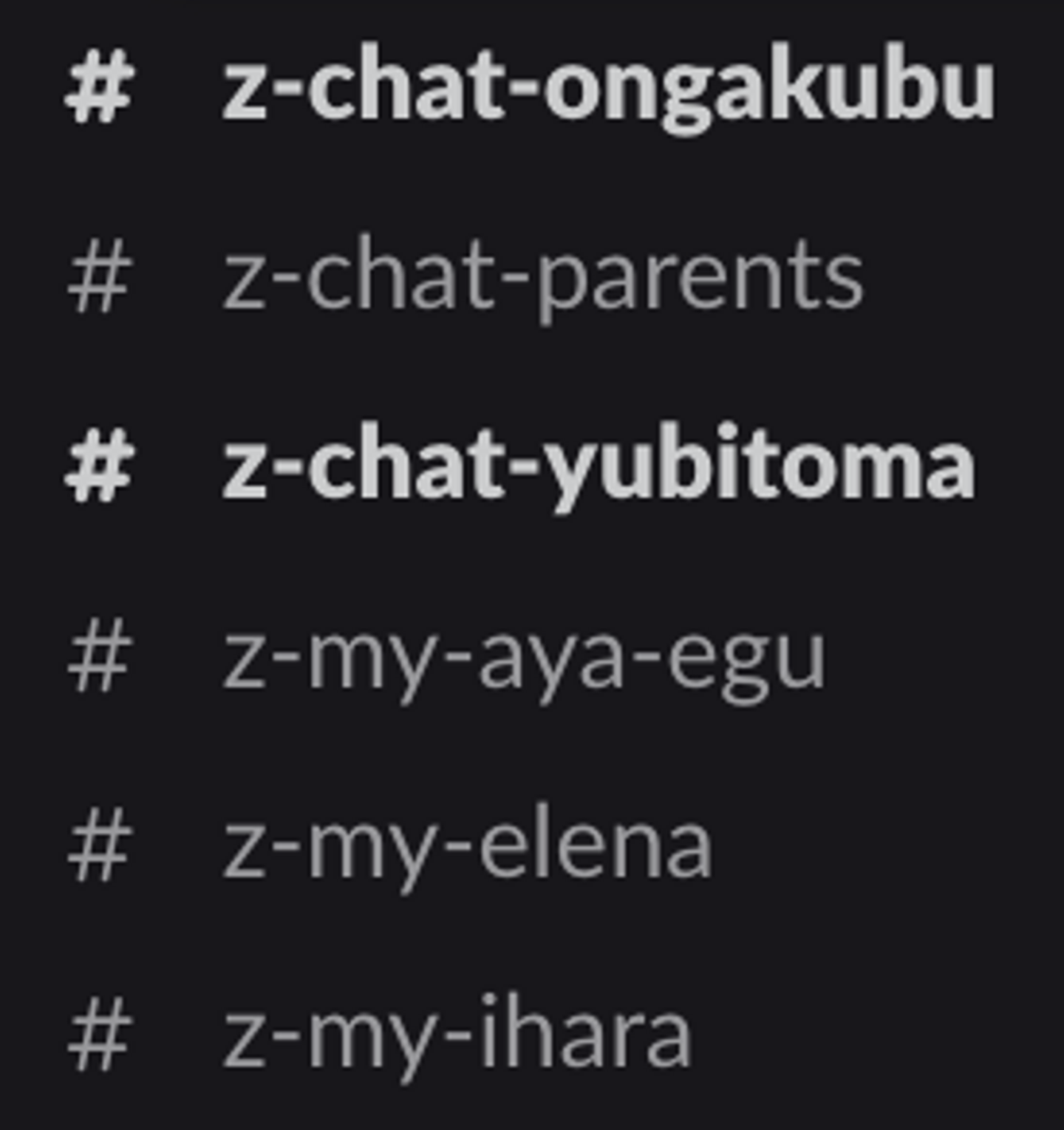 プロジェクトチャンネルと混同しないよう、アルファベットのZを冒頭に入れ、チャンネル一覧の一番下に表示されるようにしています。