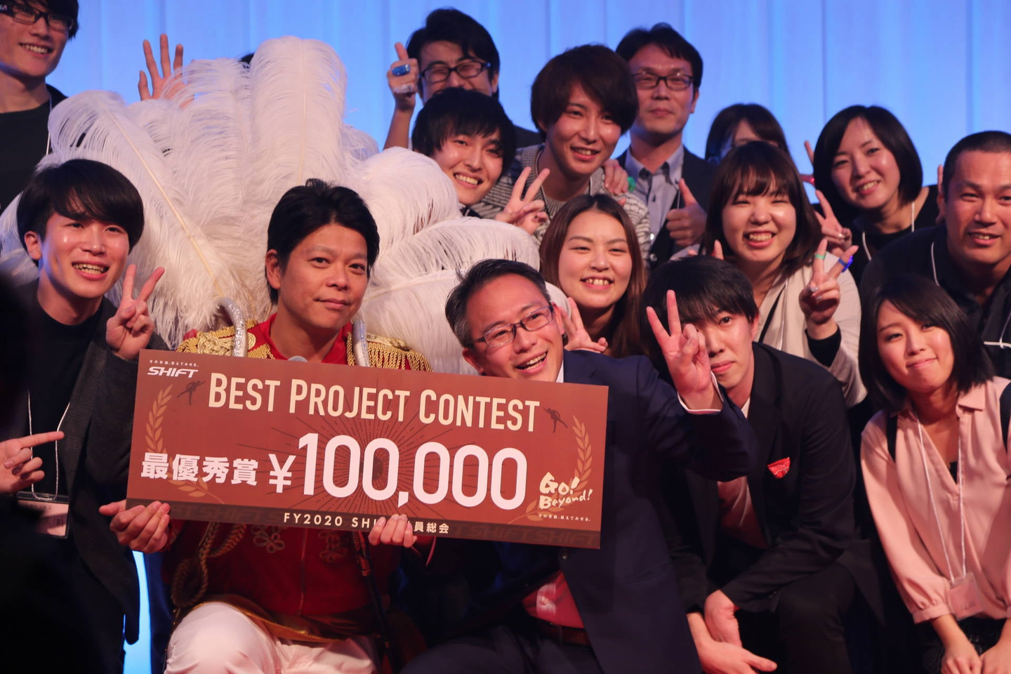 (写真は、昨年12月に初めての社員総会にて全社員のなかからベストプロジェクト賞として最優秀賞を受賞したときのものです)