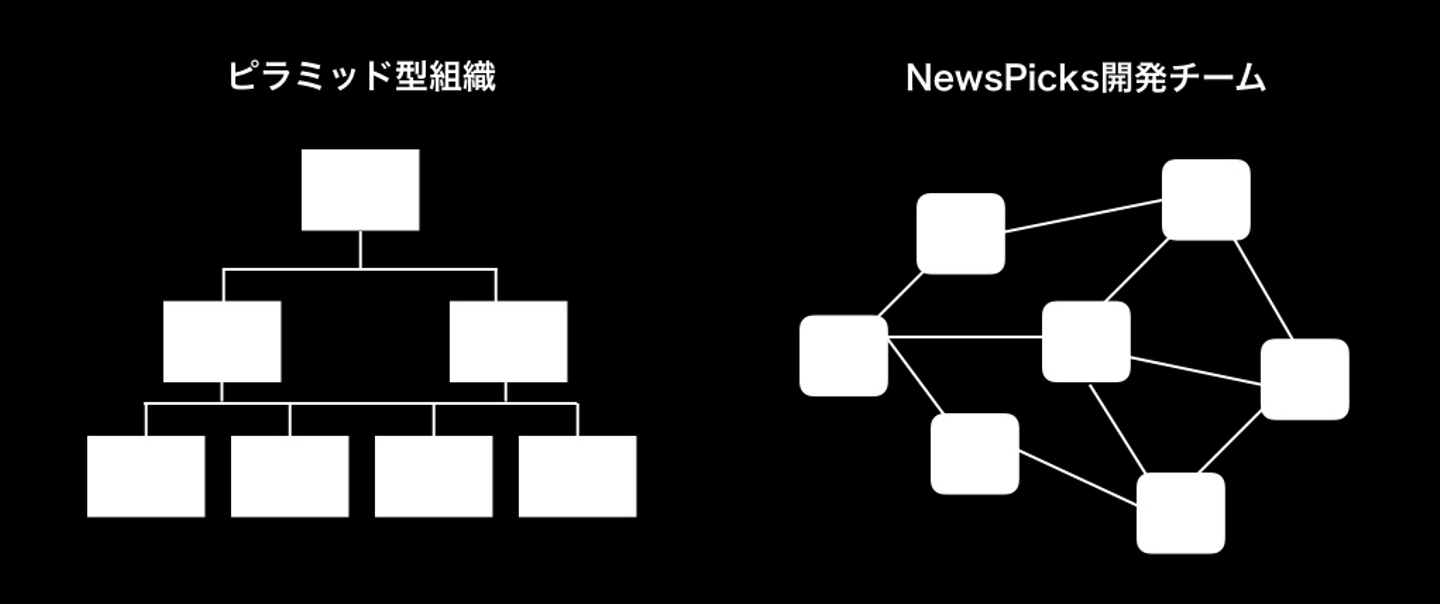 例えば、NewsPicksはプロジェクトごとにタスクフォースで小さいサイズ(5-10人)の開発チームを作っています。これは7つのルールのうち「自由主義」に基づいた考え方です。
