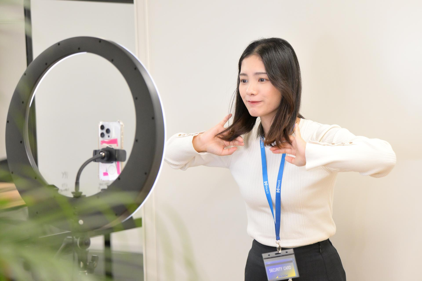 入社してからは顔出しで広報活動にも励み、口癖は「私が一番可愛い」の渡辺さん。
