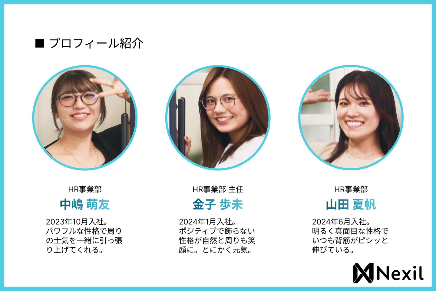 |私も転職を経て数社ほど経験しましたが、Nexilは本当にチームを越えて仲が良い会社だなって常々思います。特に今回の3人は常に明るくて私もいつも元気をもらっています!