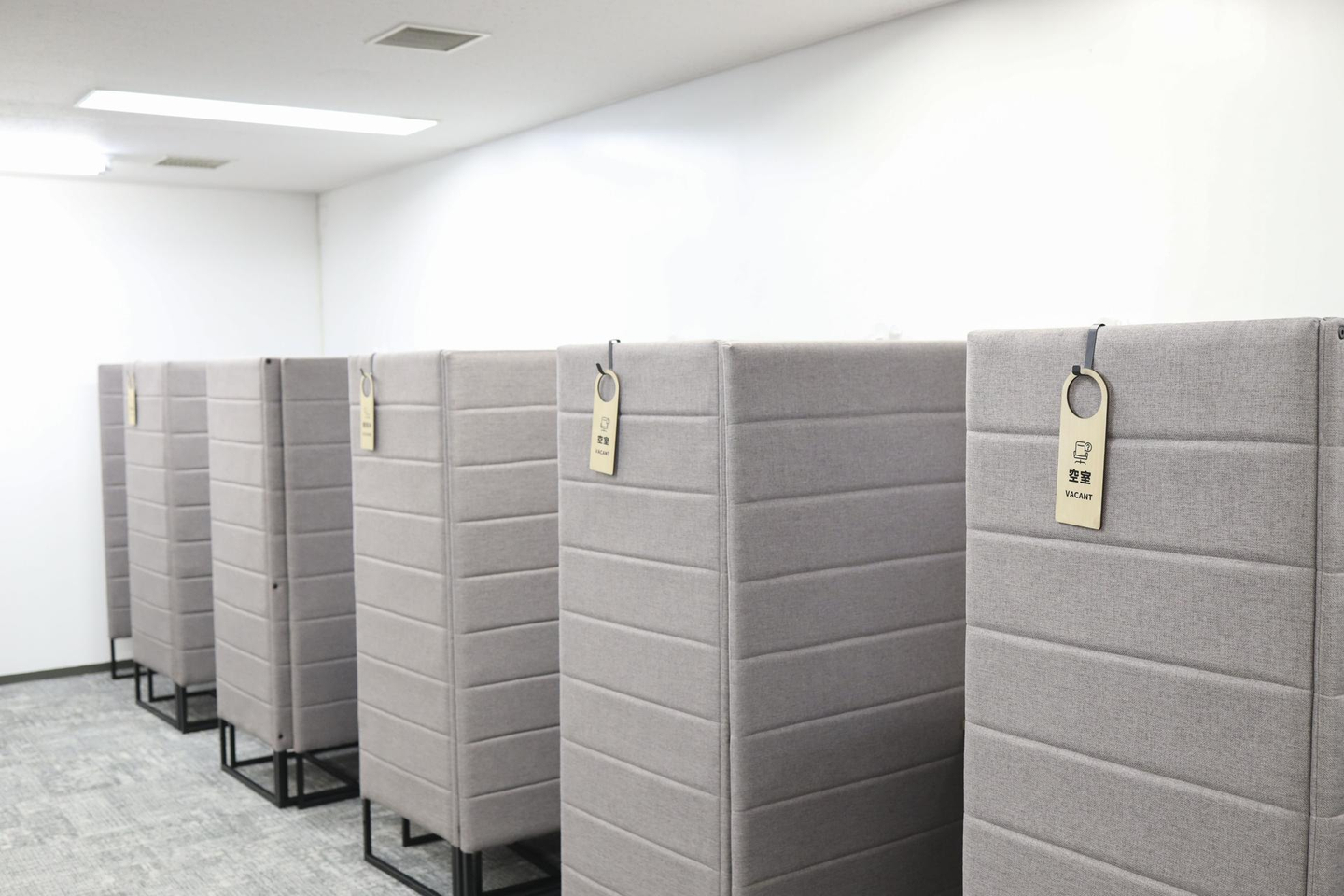 また、CAが求職者様と面談をするスペースも増設いたしました! ひとりひとりに寄り添った面談ができるよう、個室のように区切られたブースもございます。