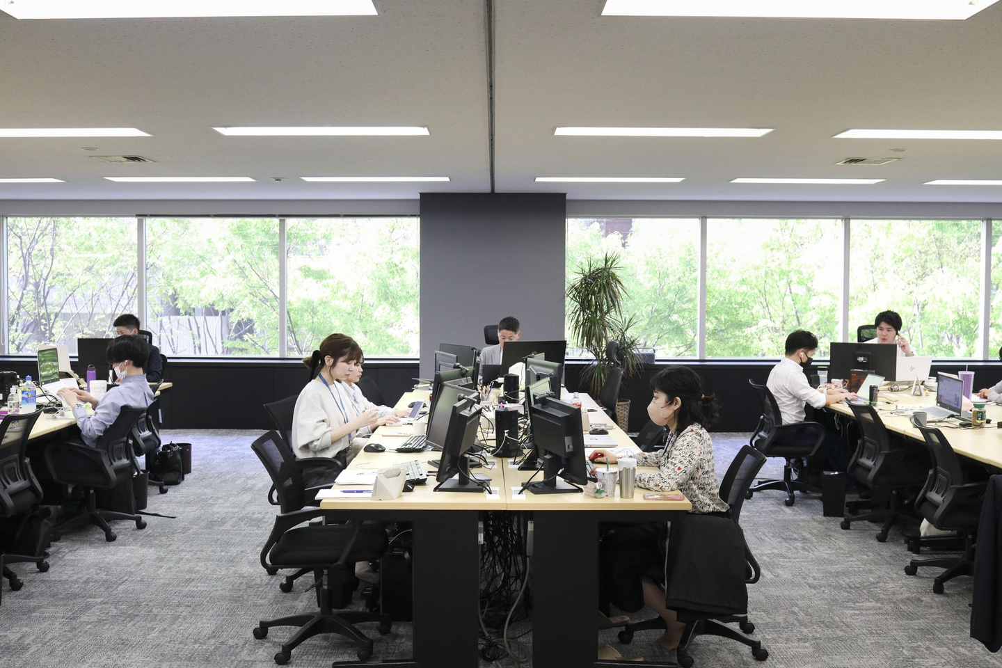 大きな窓が特徴の執務室!光が差し込みやすく、社内全体が明るく活気的になるのが特徴です! ここまで大きな窓があると、気候に関係なく外を眺めたくなりますね♪