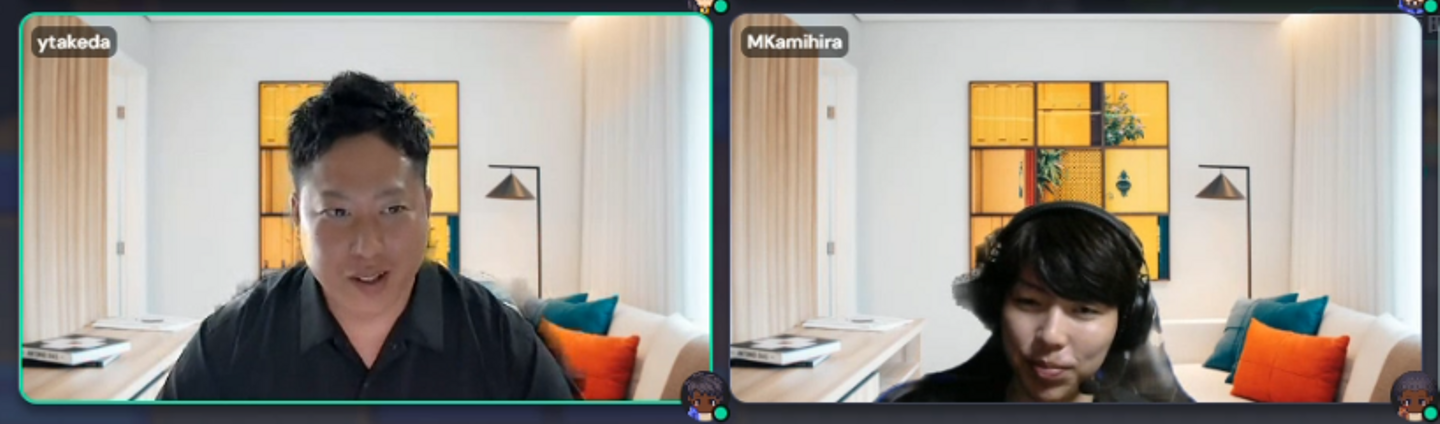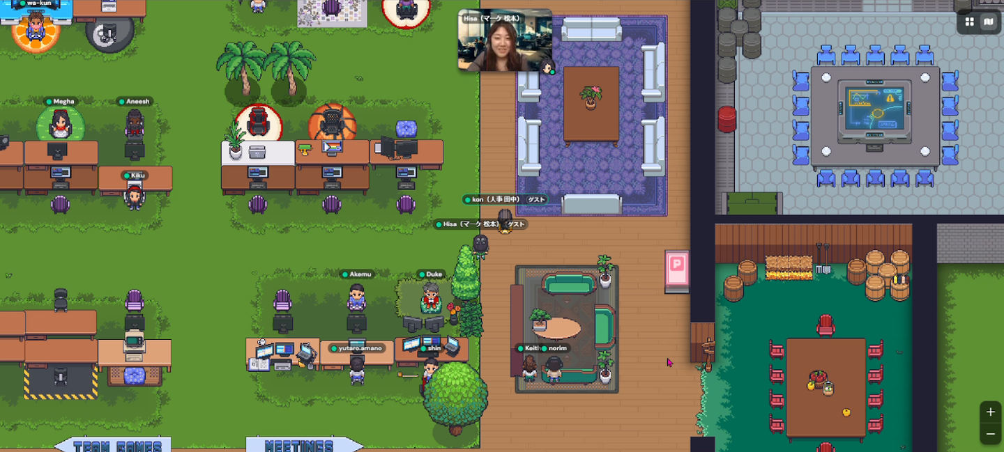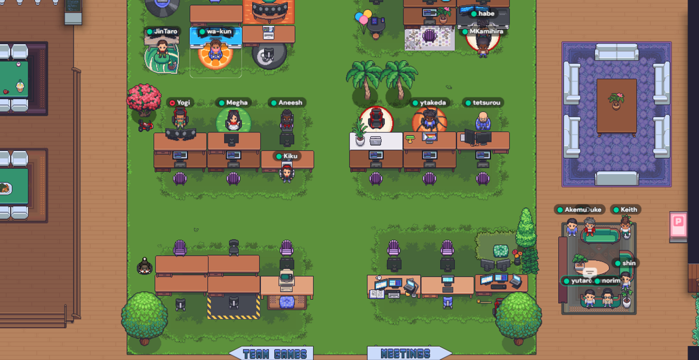 田中:私達は今、ネクスタのエンジニアの皆さんのGather バーチャルオフィスにいます。