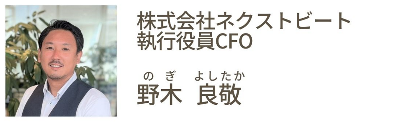 2005年、日本政策金融公庫へ新卒入社。中小・中堅企業、ベンチャー企業など600社以上の融資・審査・コンサルティングを実施。2018年、リーディングマークへ入社し、執行役員最高財務責任者(CFO)として、経営管理全般を管掌。2019年8月、執行役員CFOとしてネクストビートへ入社。現在、バックオフィス全般の管掌に加え、保育士バンク!コネクト等のSaaS事業 及び KIDSNA STYLE事業を管掌する。中小企業診断士。