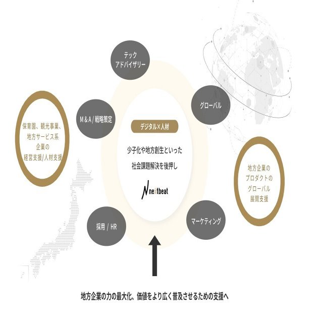ネクストビートのコンサルティング事業は、地方企業の成長を支援することを目的としています。