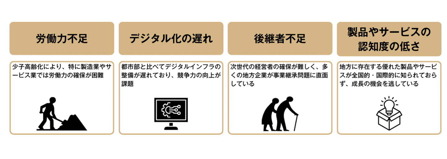 この事業は、地方企業の異なる経営課題に対して、最適なソリューションを提供し、地方経済のインフラを強化するための取り組みになります。