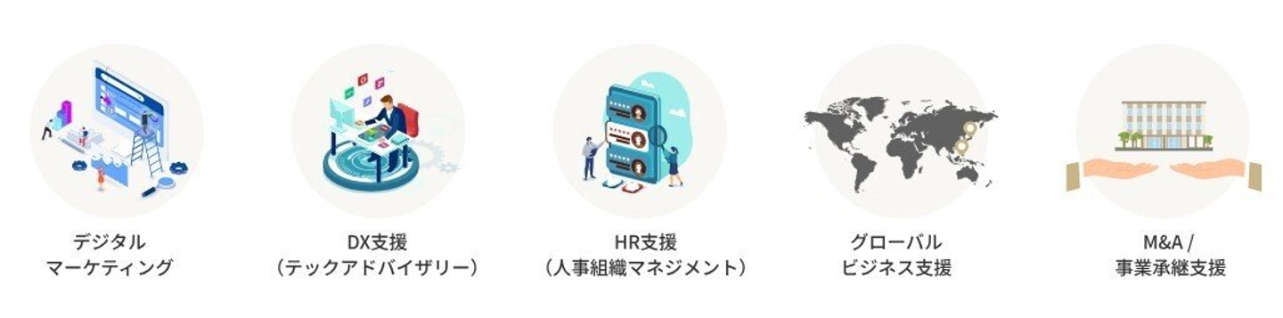 HR支援(人事組織マネジメント):人材の採用、育成、組織強化を通じて、企業の成長を促進。