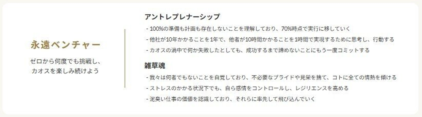 ※ネクストビート共通の価値基準・目指したい世界観を定めた行動指針