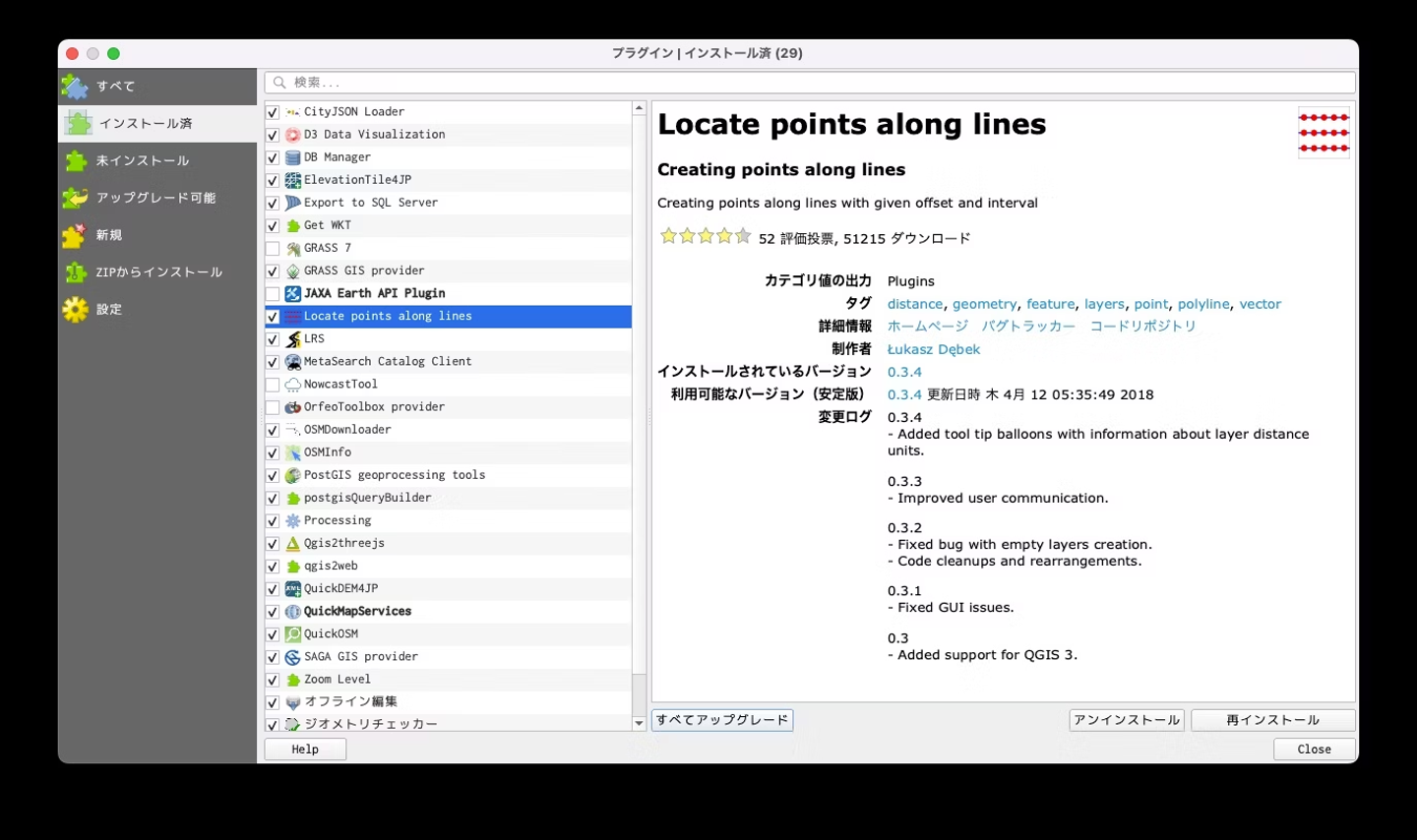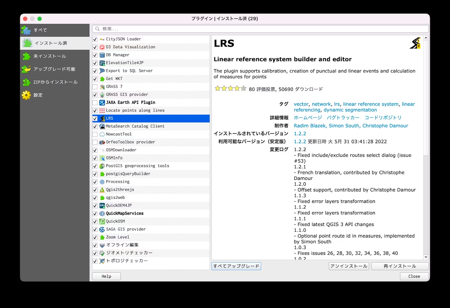 - QGISのプラグイン「Locate points along lines」と「LRS Plugin for QGIS」を使用する