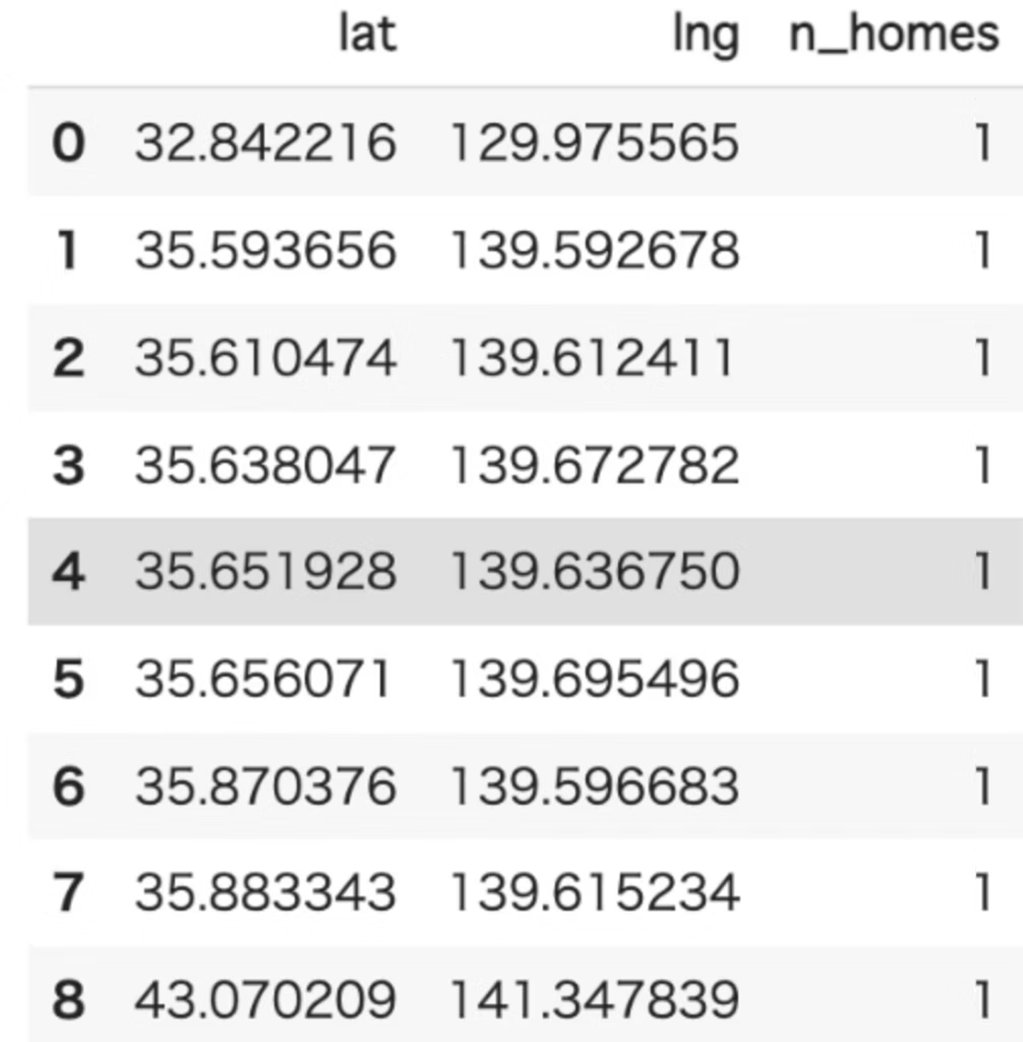 - ロケーションごとの自宅の数が出力されます。