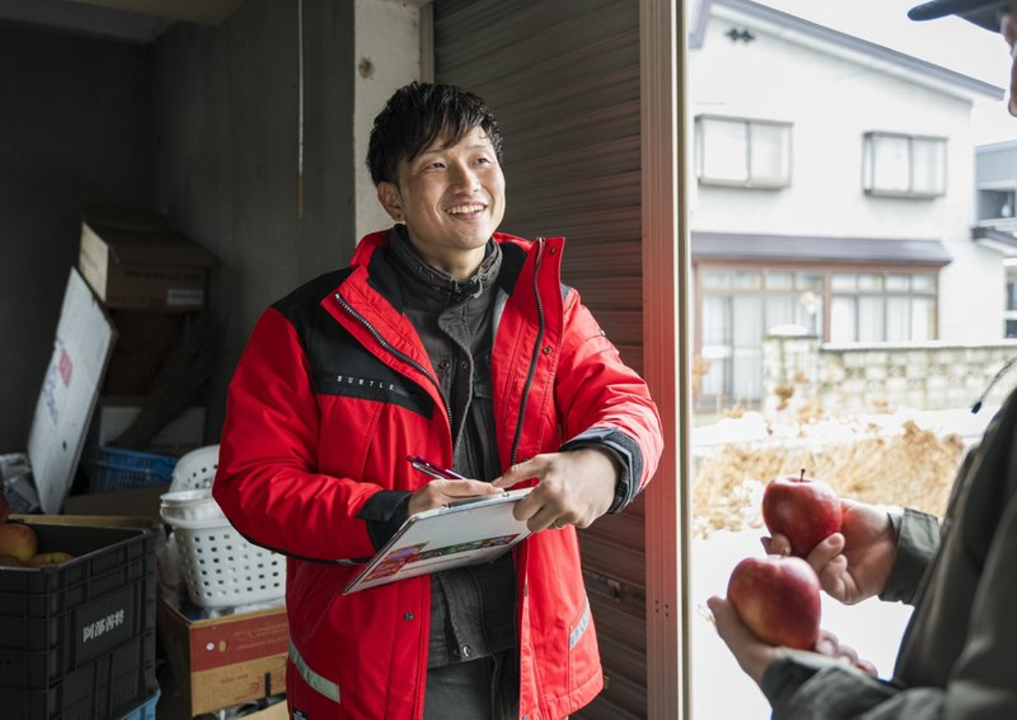 ニチノウにりんごを入庫していただけるよう、農家さんとコミュニケーションを取ったり、地域の農家さんの集まりや会合に行き、ニチノウのサービスを説明したりすることが主な仕事です。