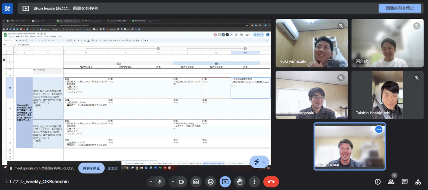 週に1度チームメンバーと上長を交えて生産・販売の進捗報告とディスカッションを行っています。ここでのそれぞれの目線合わせは欠かせないです。