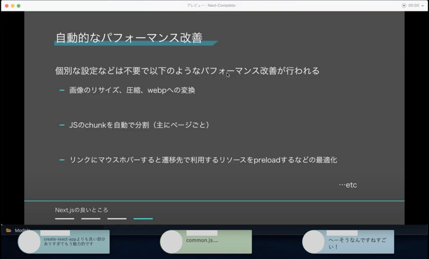 まず1つ目は、フレームワークとしての使い勝手が非常に良いからという単純な理由です。React、TypeScriptといったモダンな開発環境をコマンド一つで作成することができ、コーディングしなくても様々なパフォーマンス改善の仕組みがビルド時に自動的に盛り込まれます。