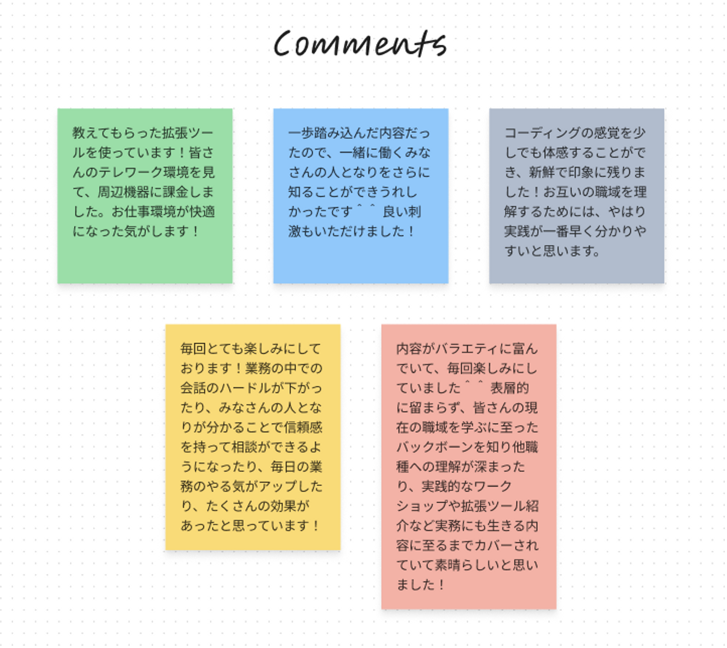 勉強会に対してデザイナーとFEの感想を集めました!率直な声なのでチームの雰囲気が分かるのではないかと思います!