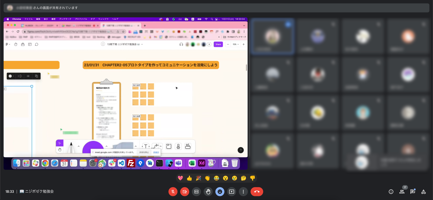 そして、今期は斬新で輪読会の形式が取り入れられています!週に1回、30分程度オンラインで開催しています。