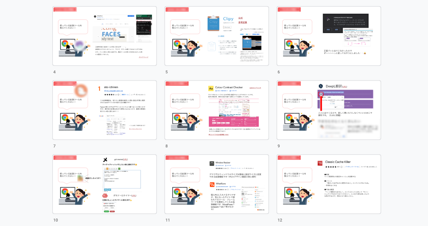 普段は対面する機会が少ないので、お互いの作業環境とオススメのツールをのぞくことで親近感が湧きました!「憧れの作業環境だ...!」「全部ほしいです!」などのコメントが盛り上がりました。