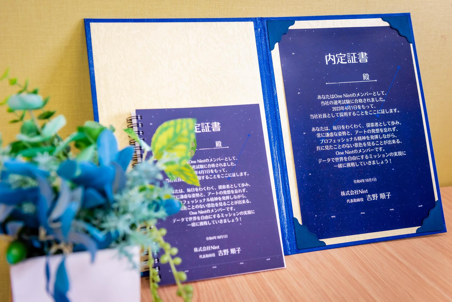今回お渡しした証書は、Nintのオリジナルです。文面には6つのバリューがモリモリ盛り込まれています。