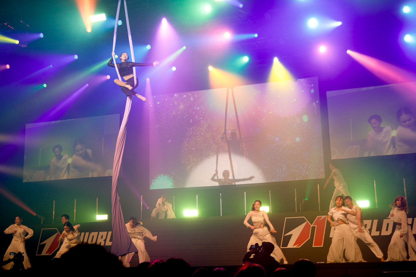 エアリアルパフォーマーの堀田聖奈さんと、この日のためにオーディションで選抜された社員たちが、会場をパフォーマンスで包みこみました。