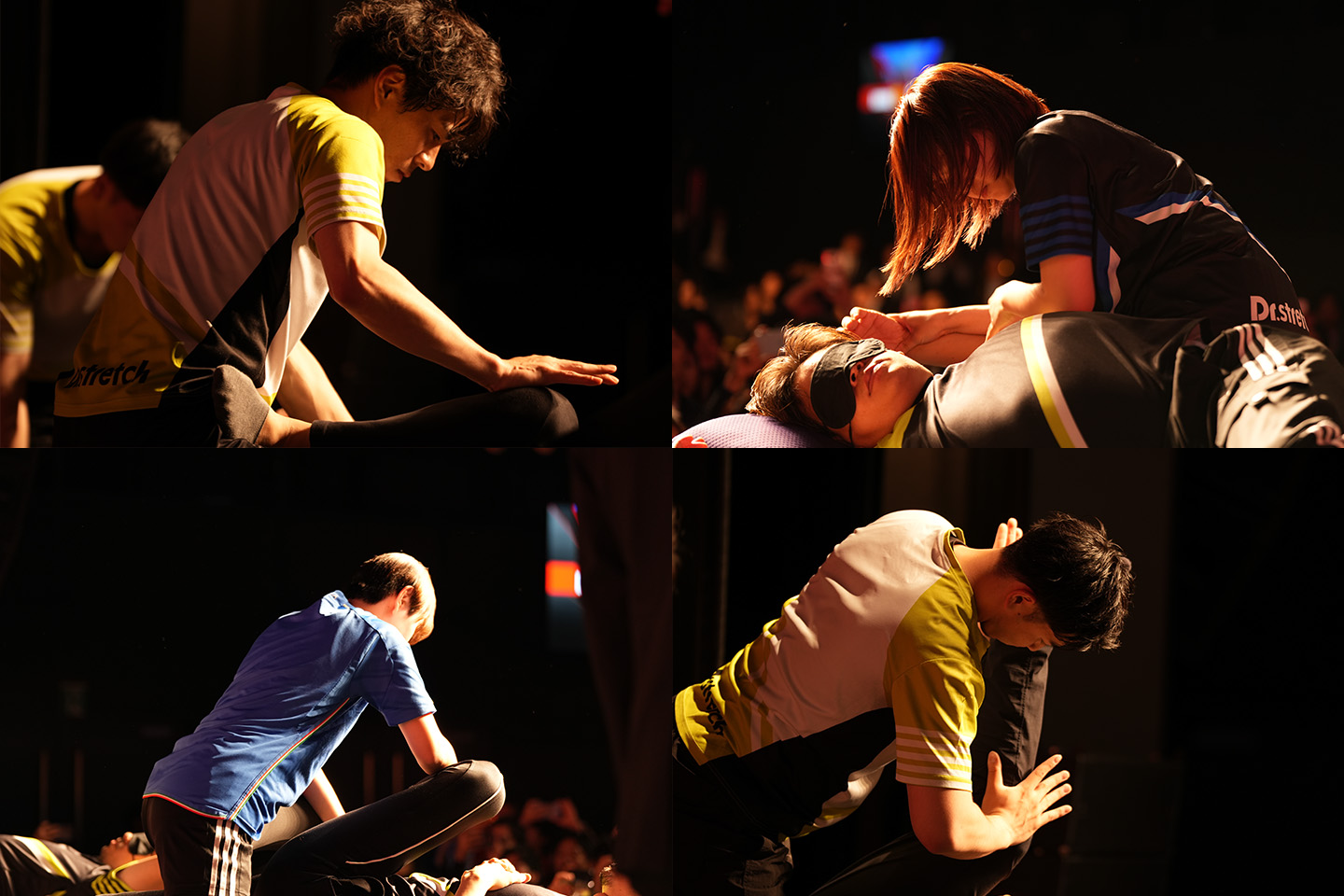 最終決戦では、目隠しをした6名の採点者へ1分ずつストレッチをかけて、ポイントを競います。