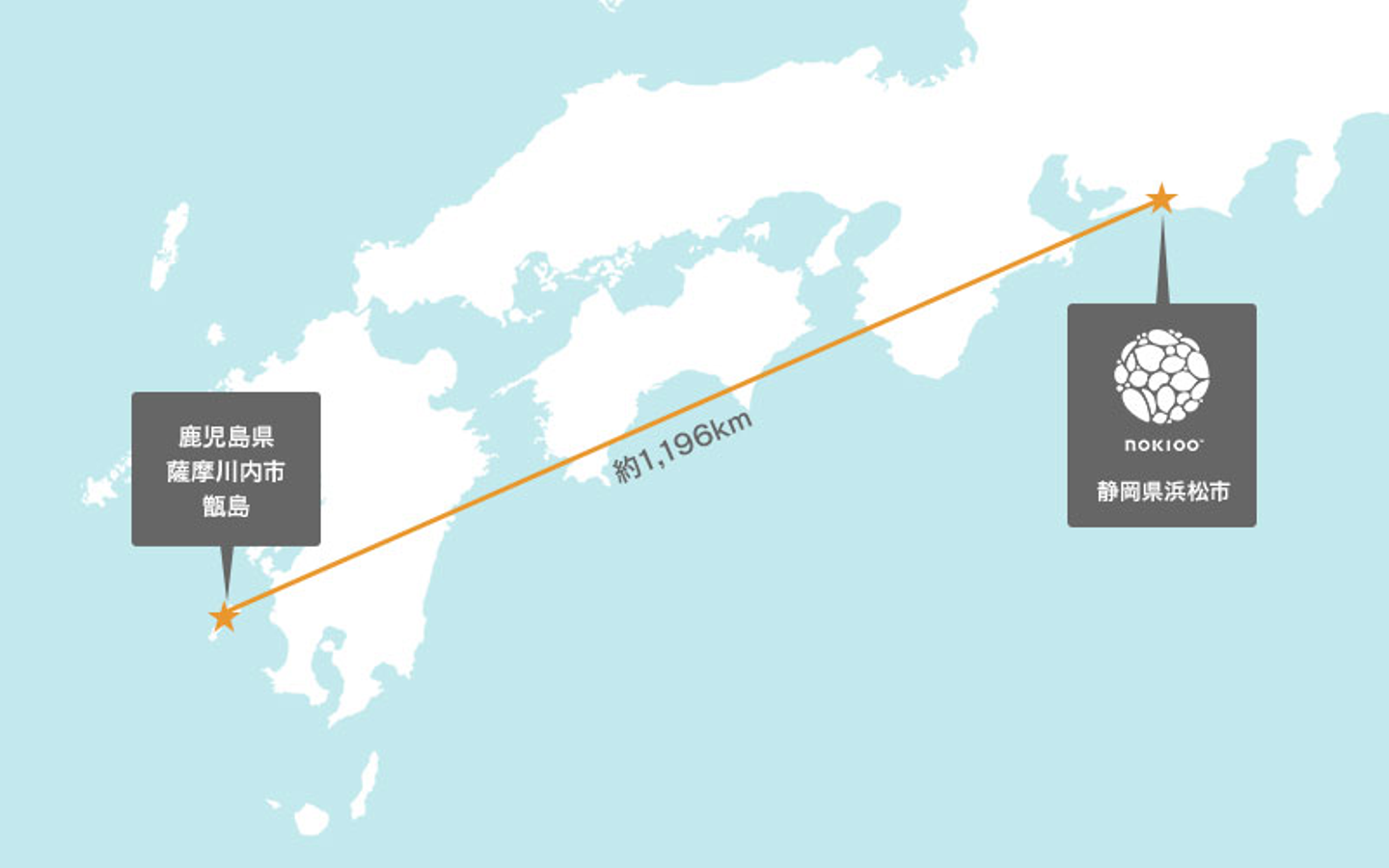 リモートワーク先として選んだ場所は、静岡県浜松市の本社から1,196km離れた、鹿児島県甑島。