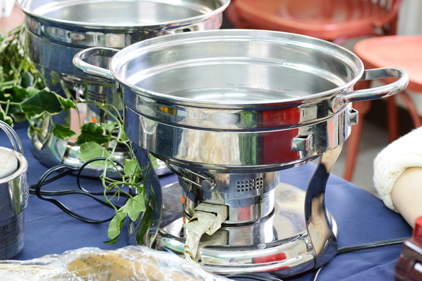 スープなどはチェーフィングで保温。温かい料理は、温かいまま食べるのがやっぱり一番!