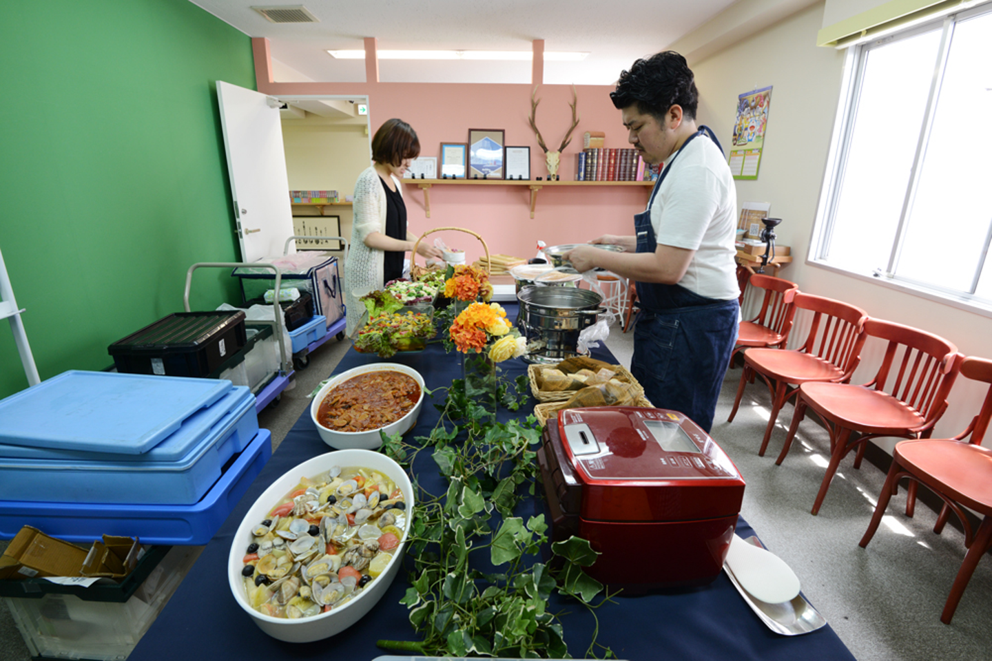 プランナーの松田さん(左)、さすがの手際の良さ!あっという間に準備完了!