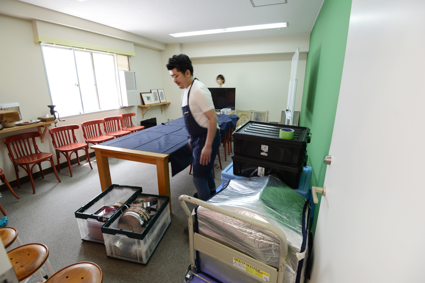【11:30】コーディネートチームが会議室に食事と装飾を運んできた!