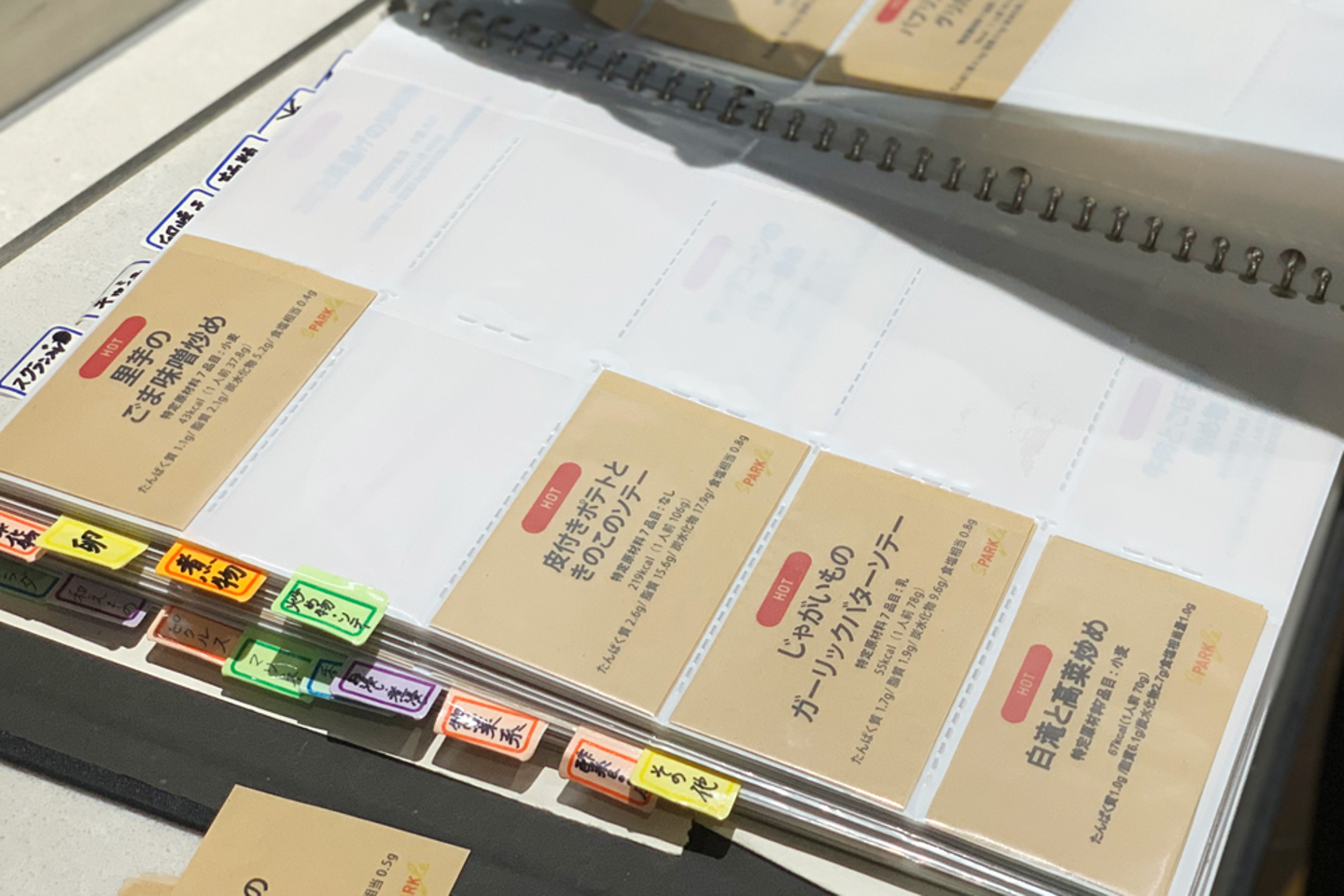 入社当初はメニューPOPの管理がされておらず、ファイルに乱雑に入っていたようです。