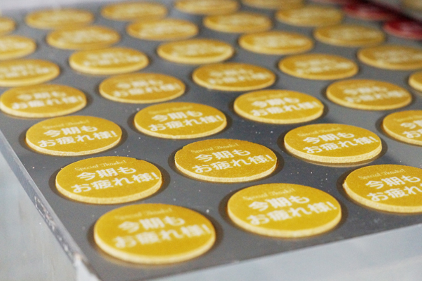 オリジナルロゴ入りカップケーキもこのように製造されています!