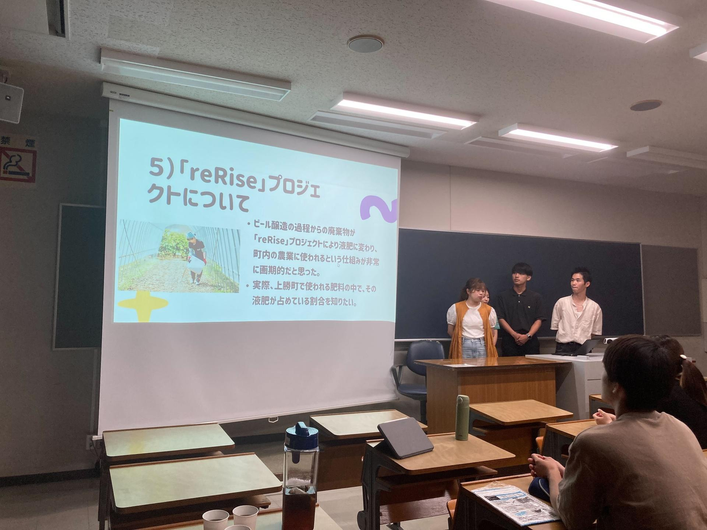 学生さんよりウェルカムプレゼン ~ビール醸造の廃棄物を液肥に変える仕組み「reRise」について~