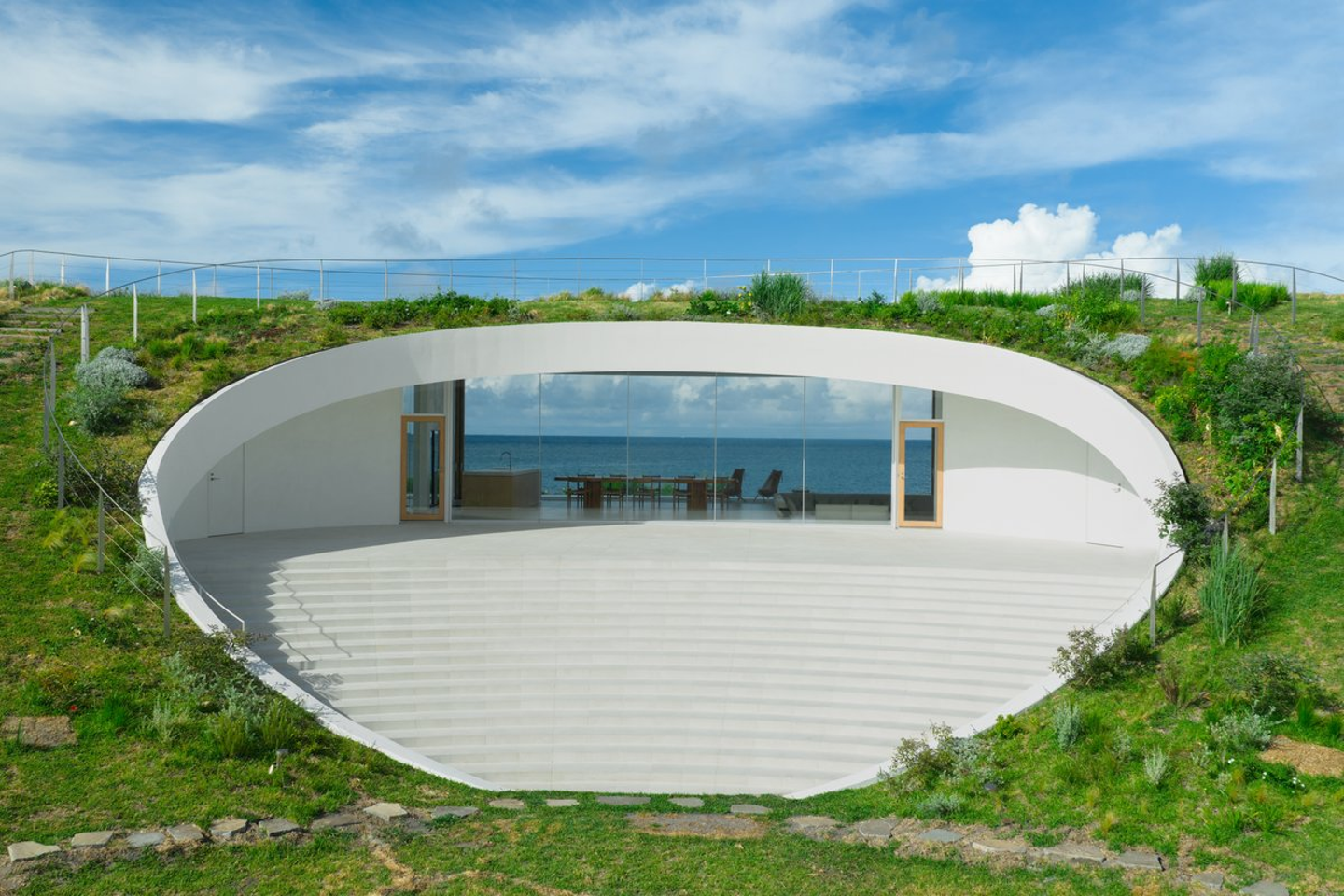もうひとつ個人的に印象的なのが、飛行機の窓からこの建物が見えること。工事が始まったときは、何もない赤土の敷地でした。それが時間とともに建物が立ち上がり、緑に覆われ、周囲の自然と一体化していく。そして今では、上空から見下ろしても建物がほとんど見えないほどに、風景の一部として“還っていく”。そんな建築は、ほかに見たことがありません。