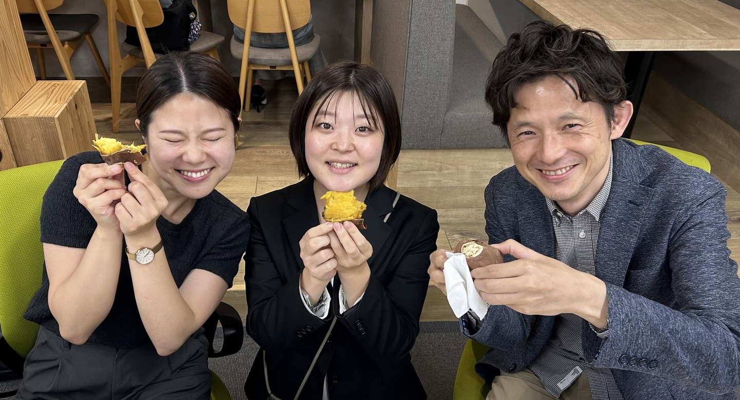 ということで、休憩タイムは東京営業所メンバー全員でホクホクの焼き芋を「もぐもぐ」。その甘さと香ばしさで、オフィスが一気にリラックスムードに包まれました😊