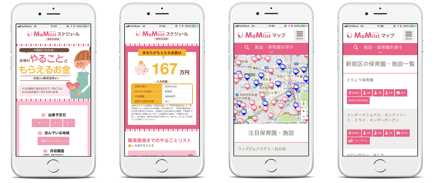 社外広報といえば、つい2日前(1/23(火))に、妊娠・出産時にもらえるお金や職場復帰までのタスク、保育園の所在地など、ママにとって探しにくい情報が簡単にチェックできる「MoMlist(マミリスト)」というWEBサービスを開始しました(現在は東京23区在住の方を対象としています)。お子さんがいる方にお聞きすると、これらの情報を調べるのって本当に大変なんだそうですね。。妊娠中の方、職場復帰前の方に使っていただき、ご意見をもとにサービスをブラッシュアップしていければと考えております。よろしければご覧になってみてください!