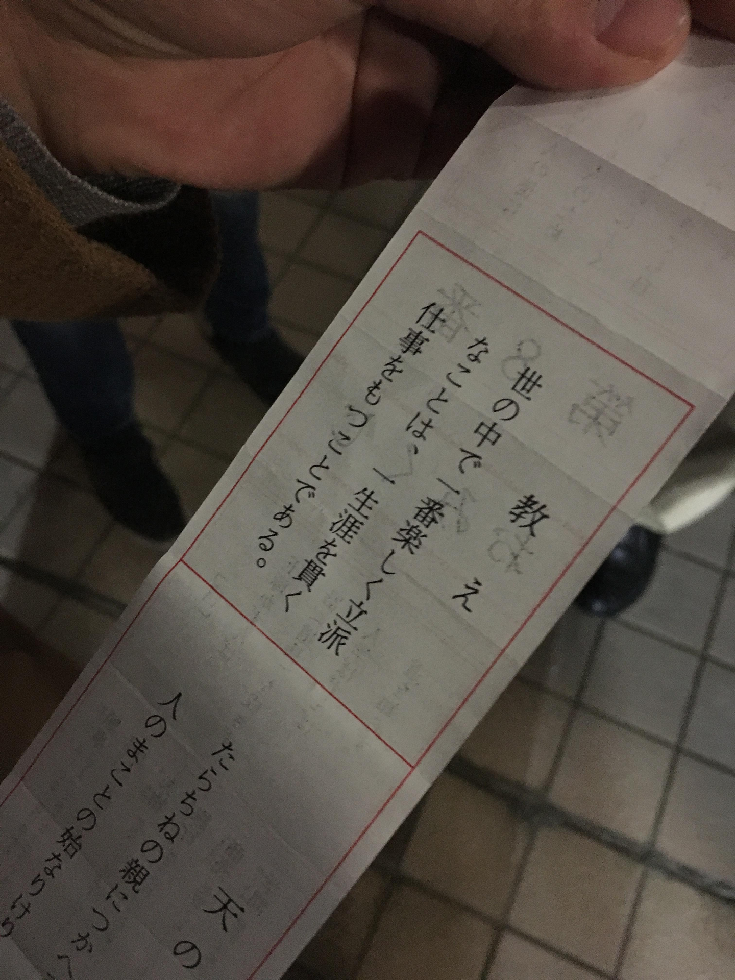 年始営業開始日の1/6には、有志で近くの花園神社まで初詣に行きました(時間を合わせた結果、日が暮れた後になってしまいました…)。部署も年齢もばらばらな皆で初詣に行くのはちょっと楽しかったです。社員がひいたおみくじに書かれた「教え」の内容を見て、これってちょっとノヴィータっぽいね、という話をしたりしました。