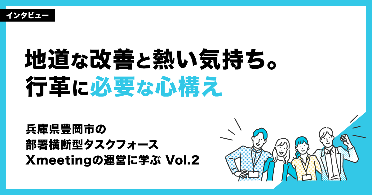 豊岡市役所全体に新しい働き方や業務改革の文化を浸透させることを目的とし、若手・中堅職員を中心に部署横断型のタスクフォース「Xmeeting(エックスミーティング)」。2023年の立ち上げ後、現在では市役所の経営層から「豊岡市役所の文化」と評価されるまでになっています。今回の記事では、取り組みを支えた豊岡市DX推進部 DX・行財政改革推進課の皆様の工夫や考え方、業務改革を進めるうえでの心構えを伺いました。