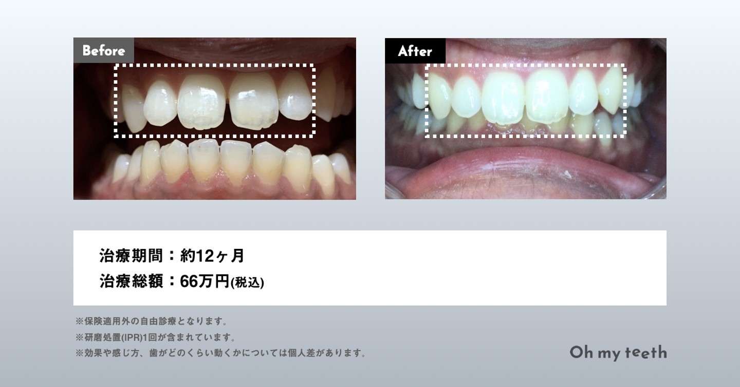 歯科衛生士をしている友人に、「歯科矯正しないの?」とよく言われていました。そこから、前歯の傾きがとても気になっていました。