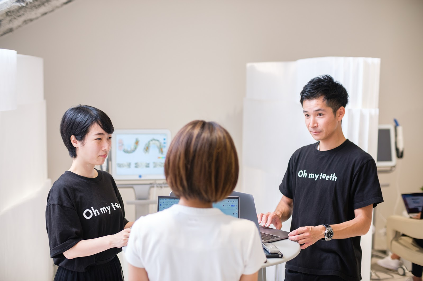 Akari: Oh my teethを知ったきっかけは、Instagramの広告でした。大学生のときに歯科クリニックでアルバイトをしていたのですが、その時ドクターに「ちょっと出っ歯だね」と言われたことがずっと気になっていたんです。ちょうど歯科矯正を検討し始めたときにOh my teethの広告を見て、無料歯型スキャンを体験しに行きました。HP~予約~店舗での体験までの流れが洗練されていることに感動し、体験の際にはMakotoに直接商品説明をしていただのですが、とてもいいサービスだなと興奮しました。