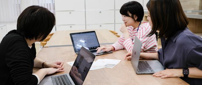当社はコロナ前から週1日のリモートワークを採用しており(現在は週2日リモートワーク可(一部条件あり))、コアタイム11時から16時のフレックス勤務制度により、勤務時間の調整も可能です。