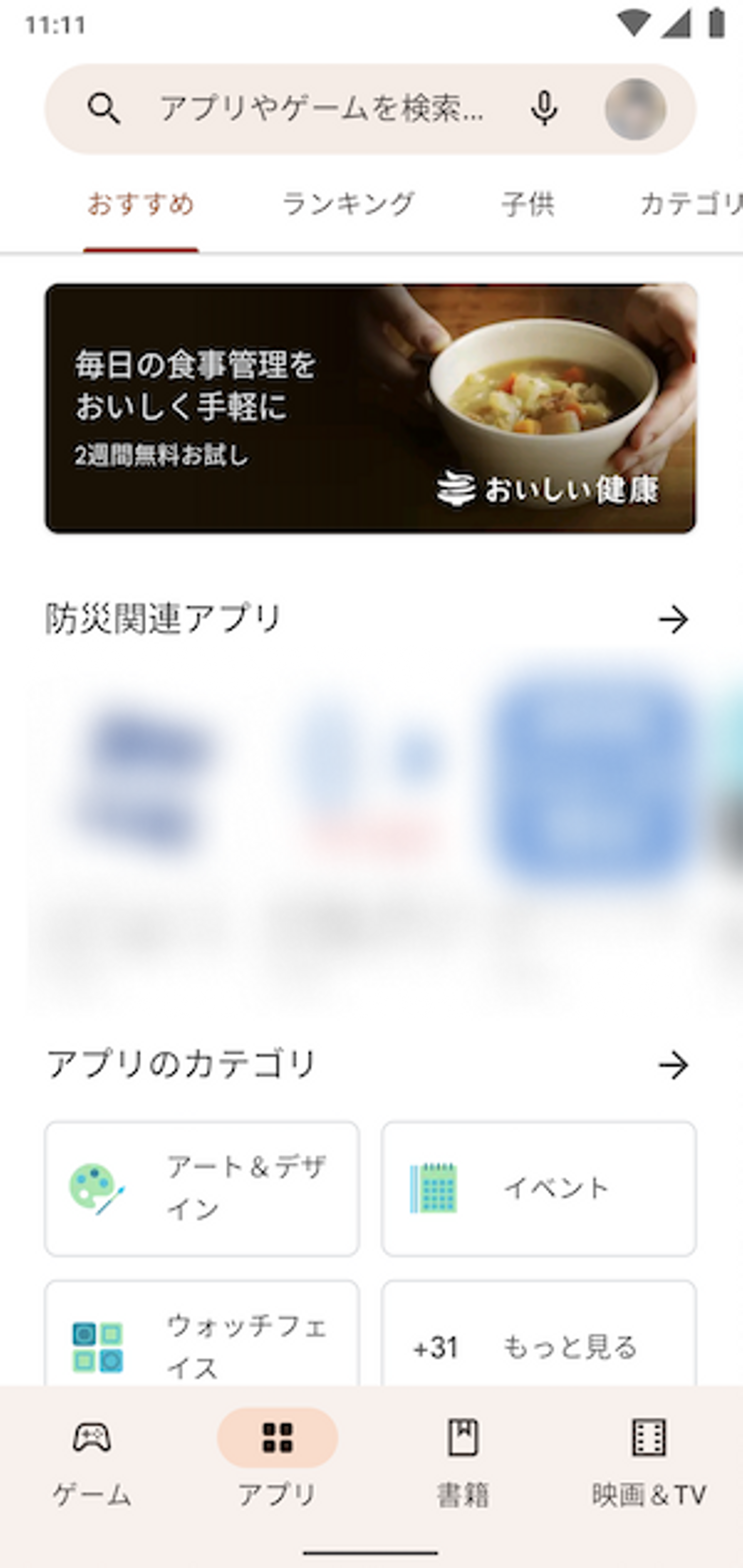 2022年4月1日においしい健康AndroidアプリがGoogle Playのおすすめタブのトップに掲載されました!